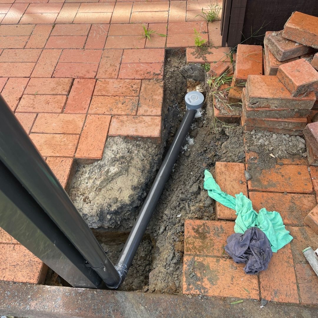 A key part of this build was tying the new downpipe into the homeowner’s existing stormwater pipe that runs away from the house.