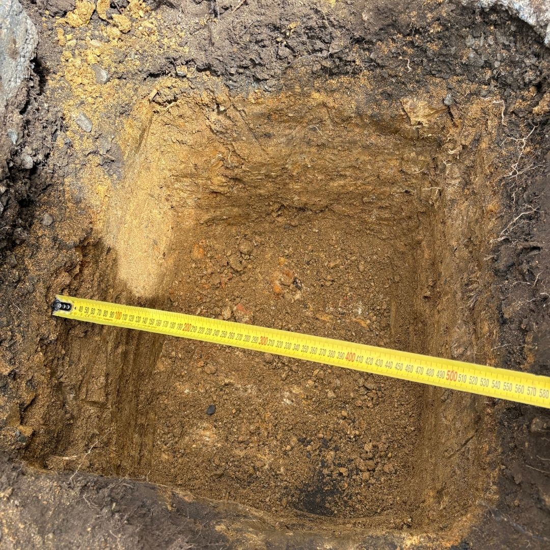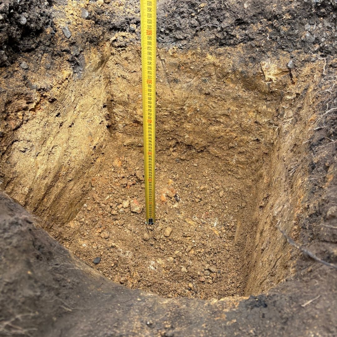 Our team dug out 500 x 500 footing to create a solid base for the umbrella installation. This was hand dug no machinery involved. After a conversation of some sprinklers possibly running through, we took extra care to avoid any lines in the ground below.